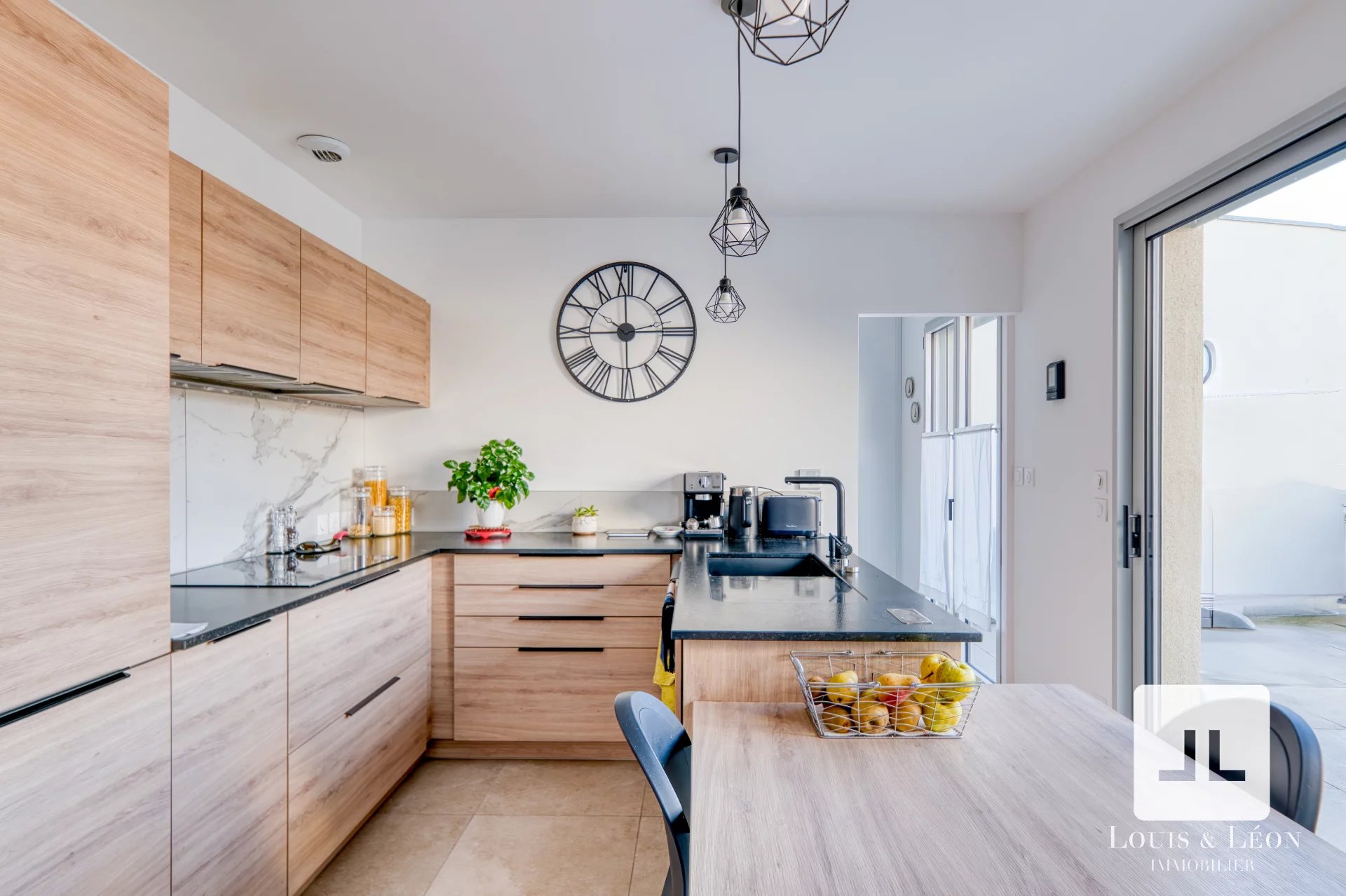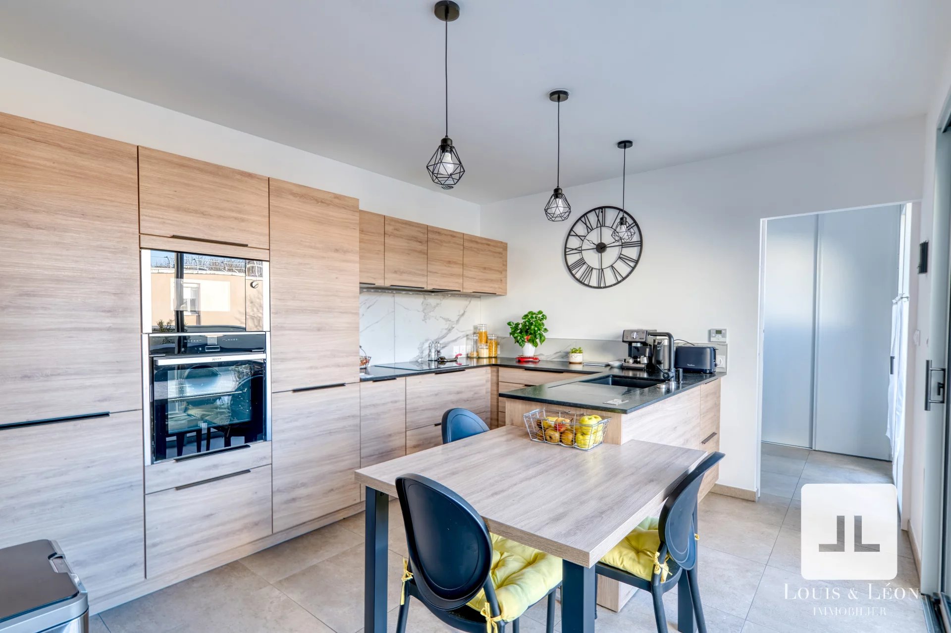 La cuisine, signée Schmidt, a été réalisée à partir de matériaux nobles et de finitions haut de gamme. Entièrement équipée, elle allie élégance, durabilité et performance, et se prolonge par un cellier attenant, discret et parfaitement intégré à l’organisation du quotidien.