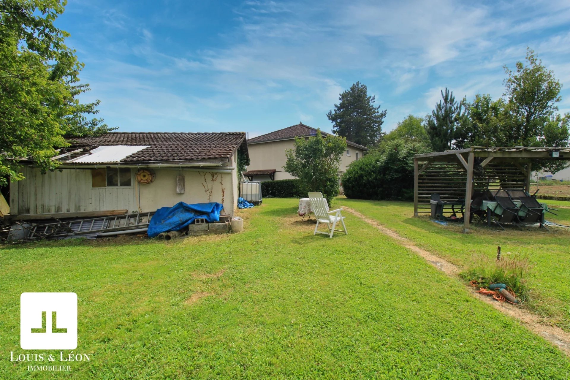 L'entrée principale de la maison se fait à l'étage, le hall donne accès aux pièces maitresse de la maison, un vaste espace de vie lumineux, une cuisine équipée, 4 chambres, une salle de bains, un WC indépendant. Une volée de marches mènent au sous-sol, ou vous trouverez un bel espace de vie faisant office d'atelier, une buanderie, un garage. Le tout amenant directement sur le jardin ou vous trouverez un atelier de 32m2 qu'il est possible d'aménager ou d'agrandir davantage, une cour ou vous pourrez garer plusieurs voitures.