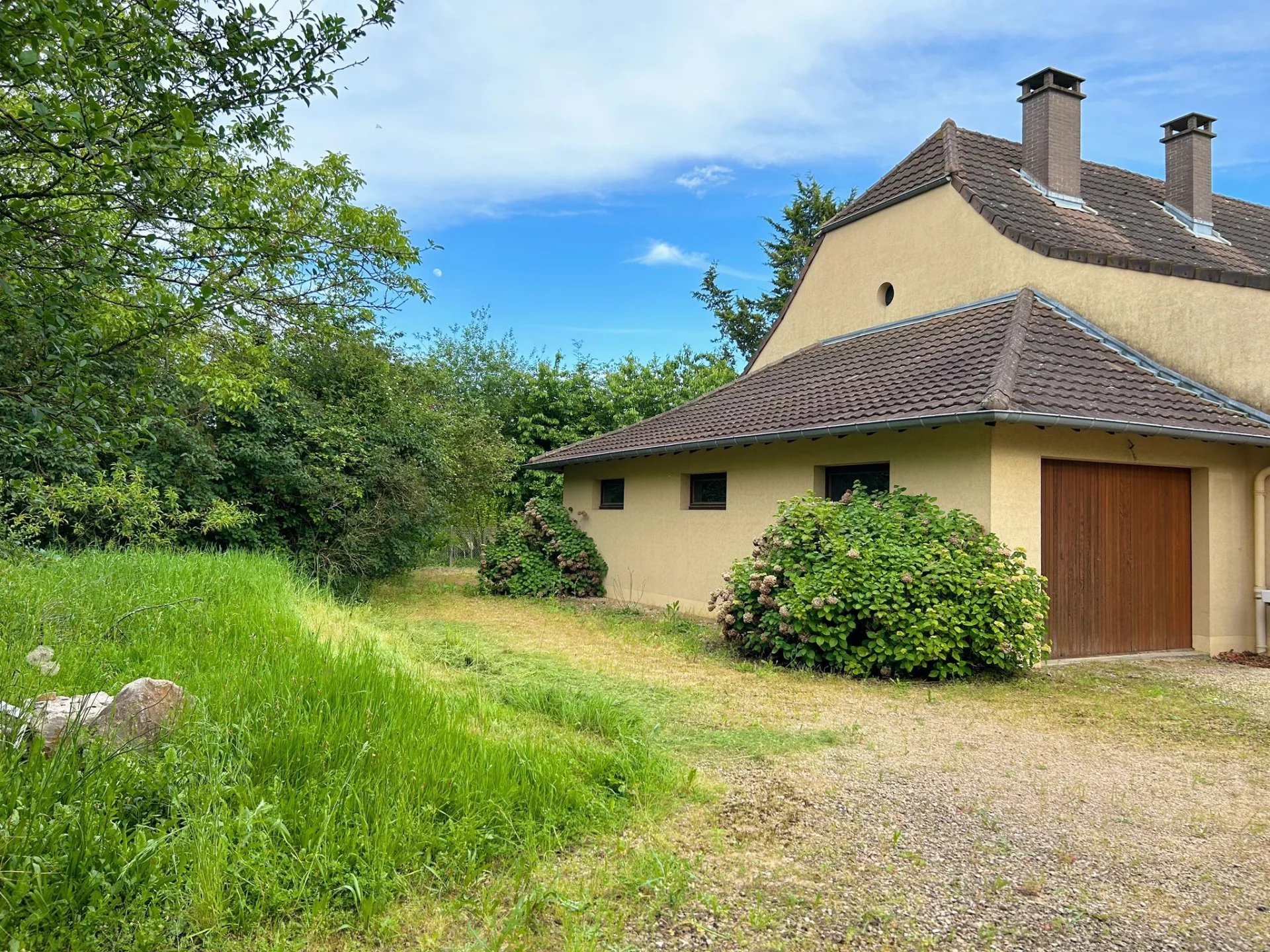 Charmante maison de 210,5m2 habitables et 223,7m2 de surface au sol (étage mansardé), située AU CALME sur la commune de Rancy, à 10 minutes de LOUHANS et 15 minutes de TOURNUS, avec commodités, transports et écoles.