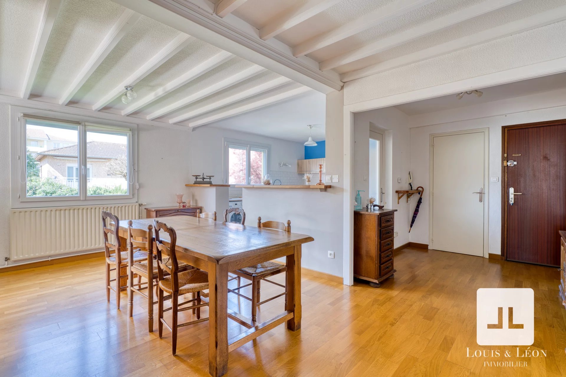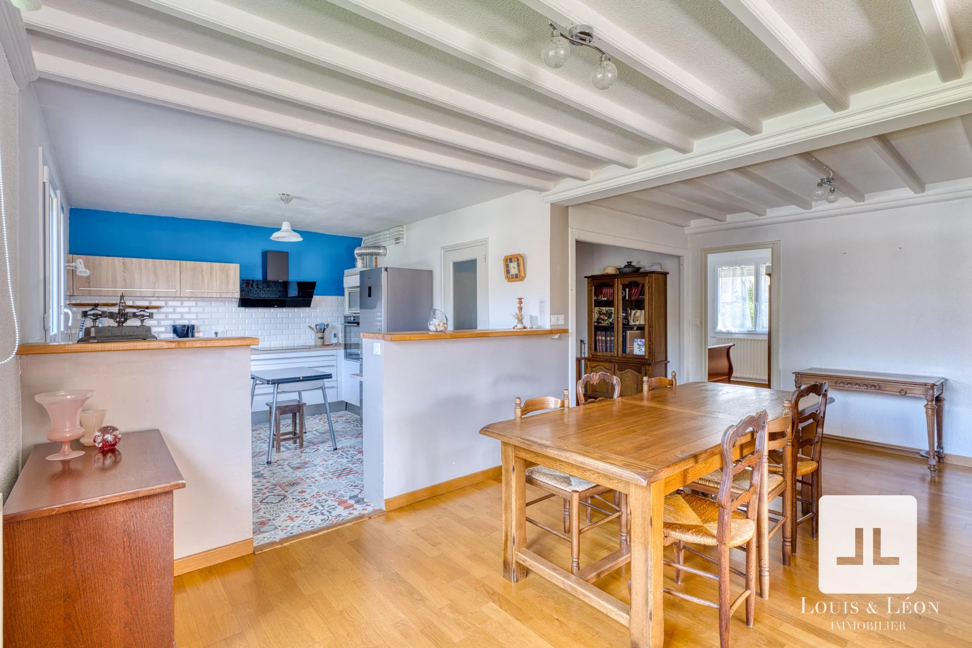 La cuisine semi-ouverte sur le séjour crée un espace convivial et fonctionnel, idéal pour la vie quotidienne comme pour recevoir.