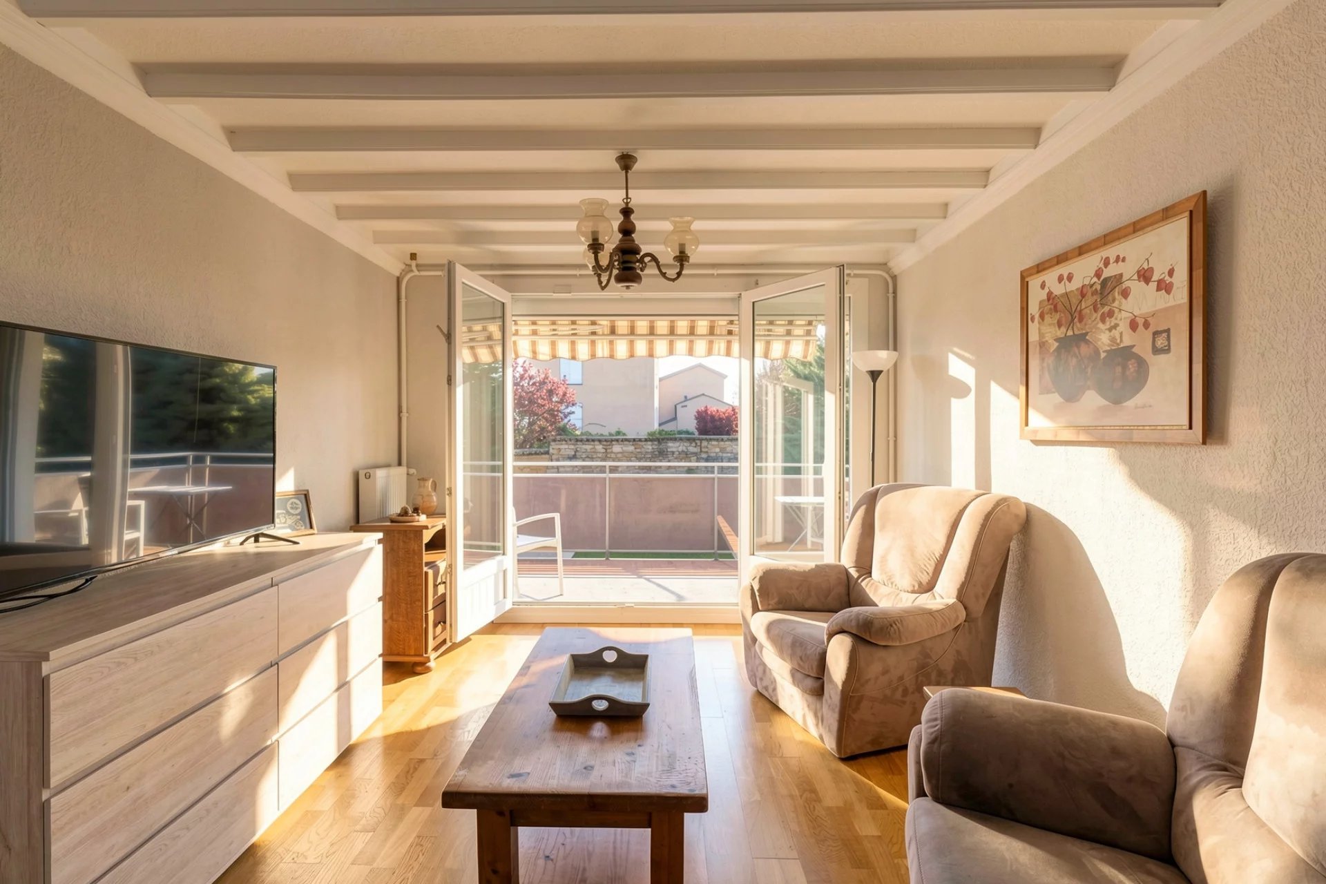 Vous serez immédiatement séduit par la belle pièce de vie lumineuse, bénéficiant d’une exposition plein sud, qui ouvre directement sur une agréable terrasse de 15 m², parfaite pour profiter des beaux jours.
